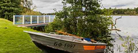- Лодка: к услугам гостей – 4-х местная современная алюминиевая лодка «Welboot – 37», предназначенная для прогулок по озеру (озеро имеет длину 6,5 км.) и рыбалки.